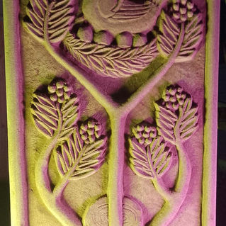 Neil Paterson carves unique original designs in sandstone and limestone. His Wedding Stones are popular commissions for presents and anniversaries. His other carvings reveal his thoughts and dreams.